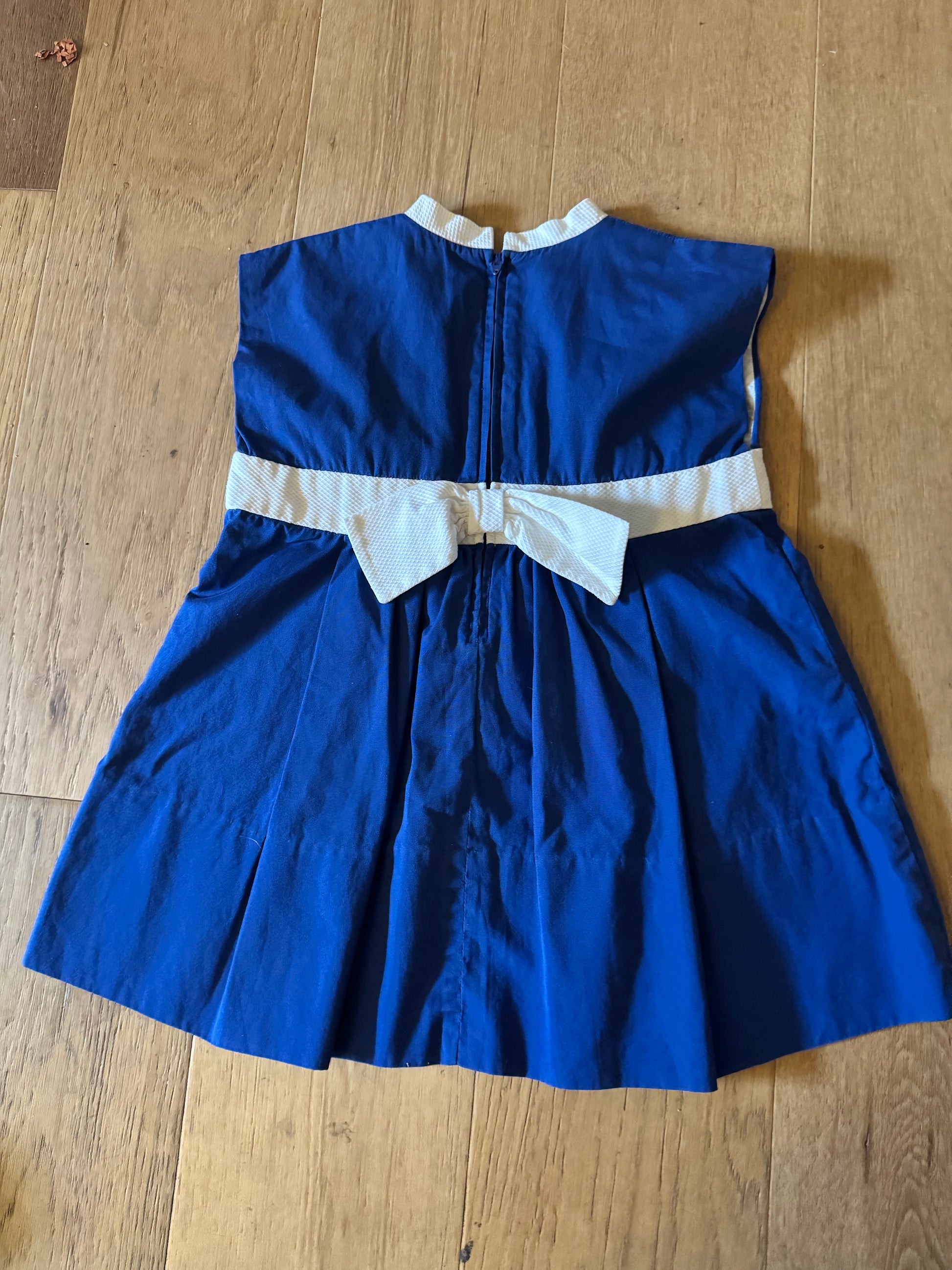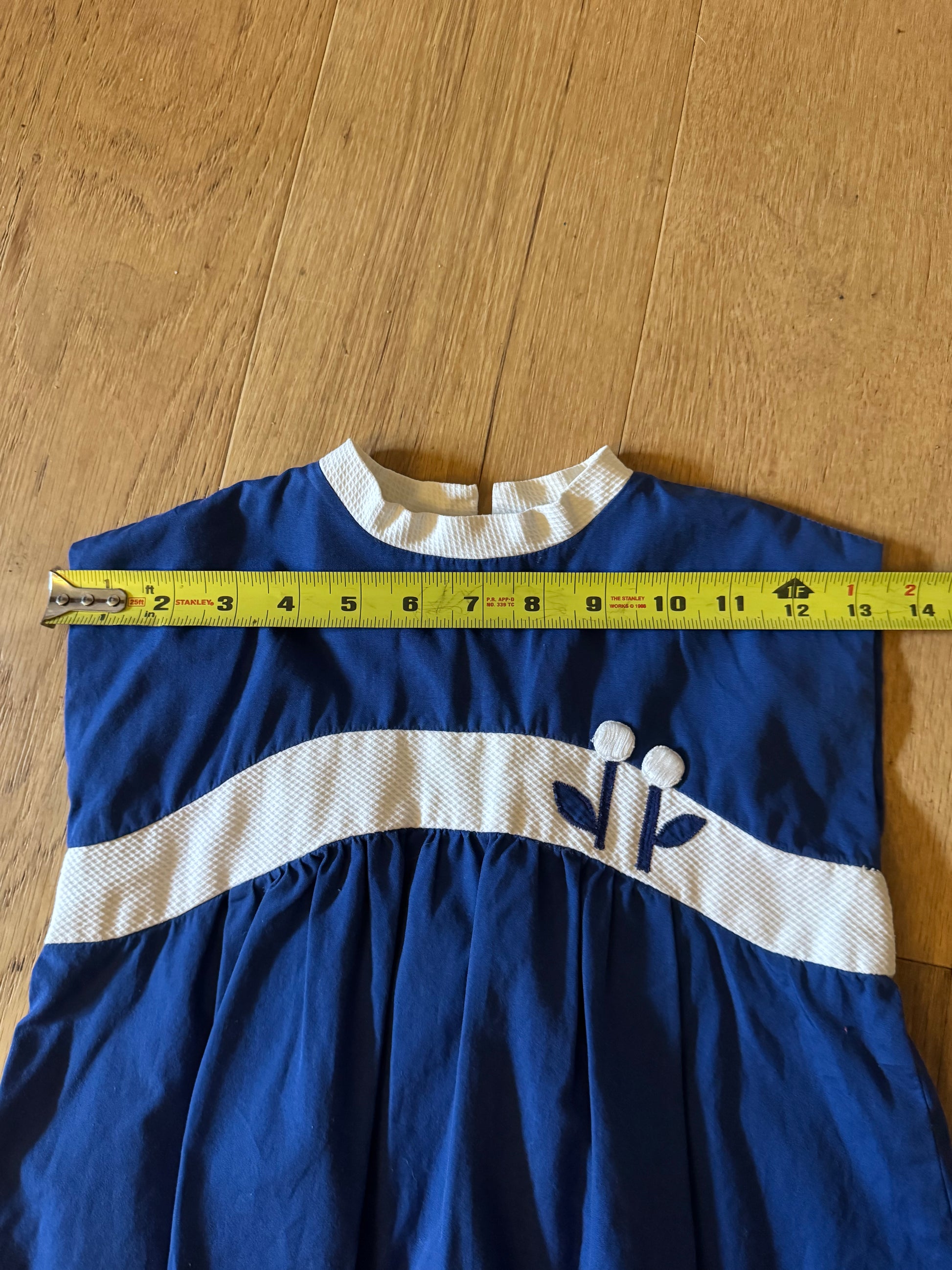 Vintage blue dress with embroidered flower.